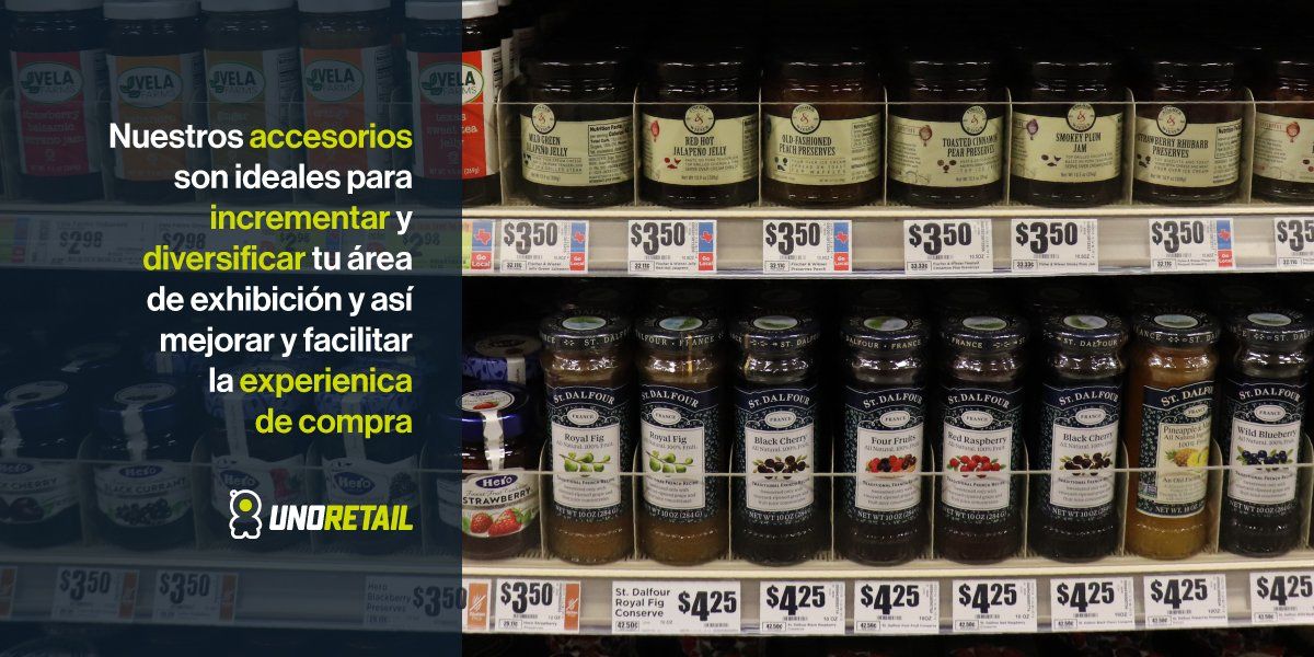 En UNORETAIL contamos con una amplia selección de accesorios ideales para incrementar y diversificar tu área de exhibición que ayudan a mejorar y facilitar la experiencia de compra.
